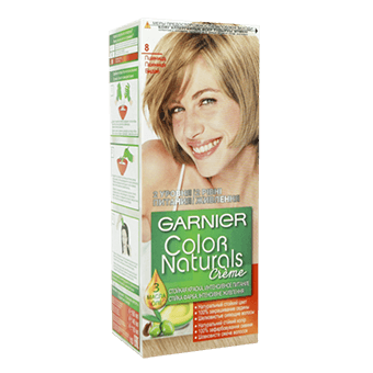 کیت رنگ مو گارنیه (Garnier) که در تولید رنگ موهای با کیفیت شناخته شده است. در کیت رنگ موی کالر نچرال علاوه بر کرم موی ۴۰ میلی لیتری، اکسیدان و کرم نرم کننده برای استفاده پس از رنگ کردن وجود دارد که به تغییر رنگی تمام و کمال و با مراقبت حرفهای کمک میکند. این رنگ مو حاوی روغنهای شیباتر، آووکادو و زیتون است که به تقویت و ترمیم مو کمک و از اثرات احتمالی رنگ مو جلوگیری میکنند.رنگ موی کالر نچرال گارنیه تا ۸ هفته پس از رنگ کردن از خشکی و آسیب دیدگی مو جلوگیری میکند و میتواند موهای سفید را پوششی ۱۰۰% دهد. یکی از امتیازهای این رنگ مو داشتن اکسیدان متناسب با شمارهی رنگ است که از خرید جداگانهی اکسیدانِ اشتباه جلوگیری میکند.پس از شستن موها میتوان از کرم نرم کنندهی غنی شده با روغن زیتون که در کیت رنگ موی گارنیه وجود دارد استفاده کرد تا باعث تقویت و جلوگیری از خشکی مو شود. در بین رنگهای سری کالر نچرال، رنگ شماره ۸ با تن رنگ طلایی یکی از رنگهای زیبا است که علاوه بر اینکه تیره نیست رگههای روشن و طلایی آن مانند زمانی است که موها هایلایت شده اند.