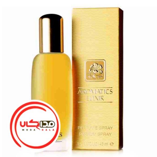 عطر ادکلن کلینیک آروماتیک الکسیر-Clinique Aromatics Elixir، که توسط Bernard Chant خلق شد ، از قدیمی ترین عطرهای  برند کیلینیک است و با ترکیبی قوی ، ماندگاری بسیار بالا و میزان پراکنندگی عالی  برای مصرف در میهمانی های شبانه و رسمی پیشنهاد می شود . روی بطری کشیده و ساده‌ی این عطر، نام آن که با رنگ مشکی چاپ شده را مشاهده می‌کنید. مایع طلایی‌رنگ درون بطری از روی شیشه‌ی شفاف آن به‌خوبی دیده می‌‌شود. در بطری از جنس فلز و به رنگ طلایی است و از دوردست‌ها هم درخشش خاص خودش را دارد. این عطر بسیار کلاسیک و سنگین بوده و بطری آن بسیار شیک و چشم گیر می باشد . این محصول که گرمای خود را از نعناع هندی ، گسنگ و بابونه و در نت های بعدی از چوب صندل ، آلدئید و خسخس می گیرد با گذشت 3 الی 4 ساعت رایحه ی تلخ آن به خوبی محسوس می شود .