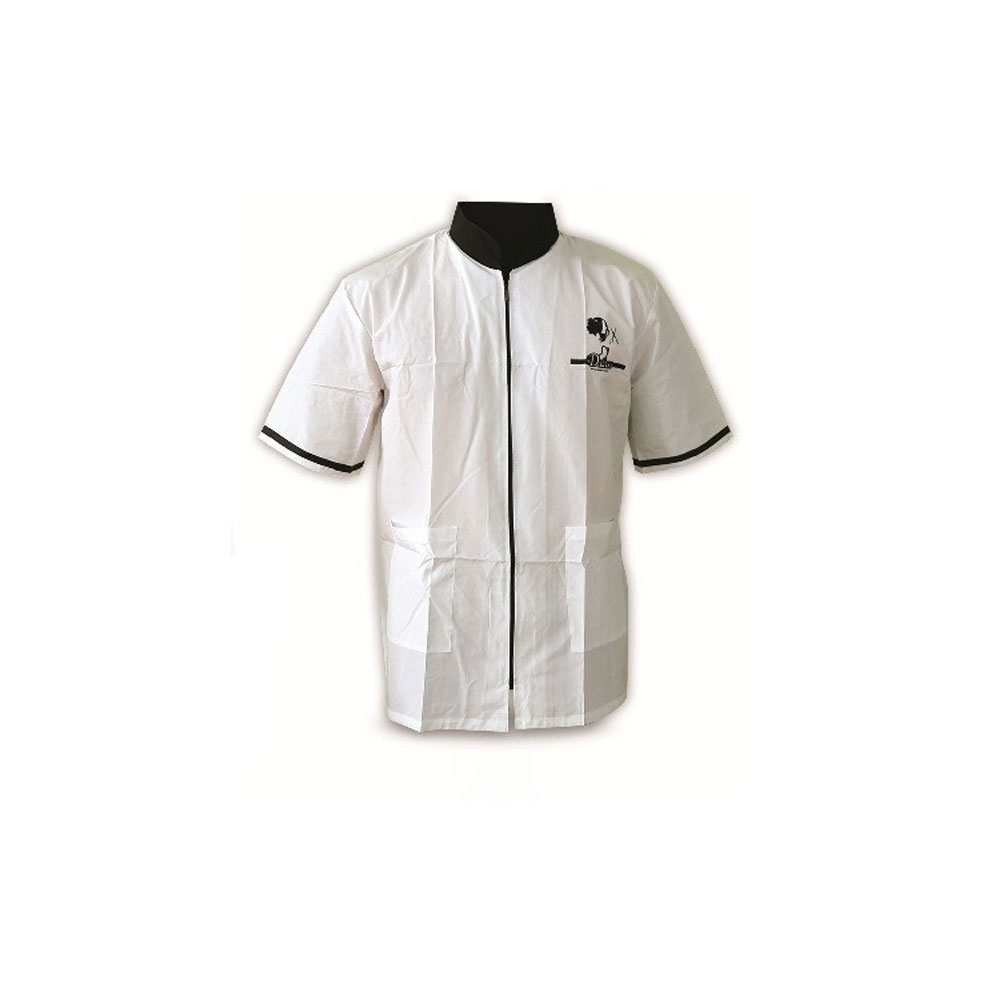 لباس فرم آرایشگری دالاس مدل آستین کوتاه، روپوش آرایشگری با جنس نخی مرغوب با کیفیت دوخت بالا جهت آرایشگاه ها و آموزشگاههای آرایشگری.