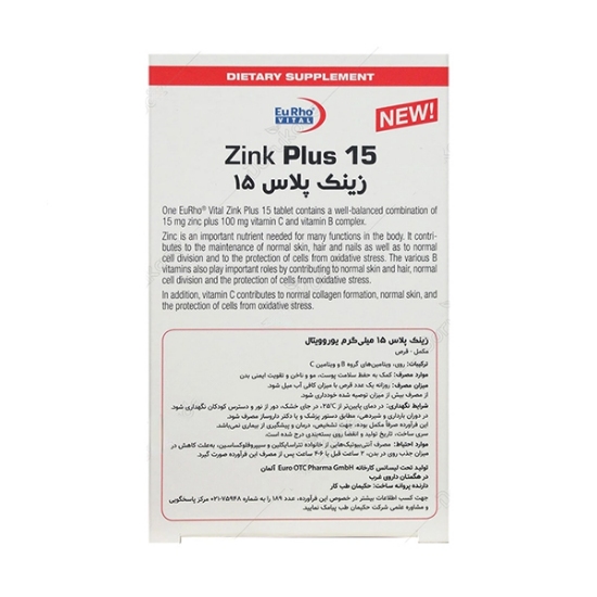 قرص زینک پلاس یوروویتال 15 میلی گرمی
