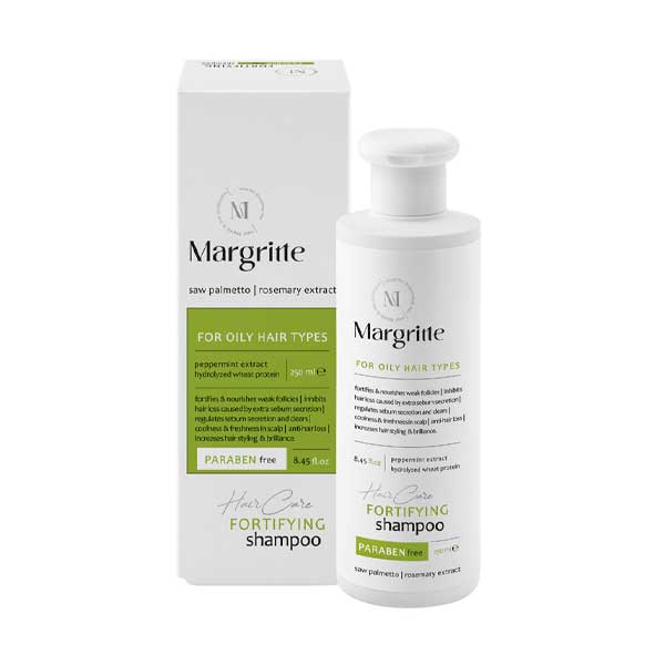 شامپو تقویت کننده موهای چرب مارگریت، محصولی تخصصی برای مراقبت و تقویت موهای چرب است. این شامپو با هدف تنظیم ترشح چربی پوست سر، تقویت ریشه و ساقه مو، و کاهش ریزش مو فرموله شده است. این محصول با بهره‌گیری از ترکیبات موثر، مواد مغذی و اکسیژن را به ریشه موها می‌رساند و به تقویت فولیکول‌های مو کمک می‌کند. همچنین، با کاهش التهاب و ترمیم موهای آسیب‌دیده، به بهبود سلامت کلی موها کمک می‌کند
