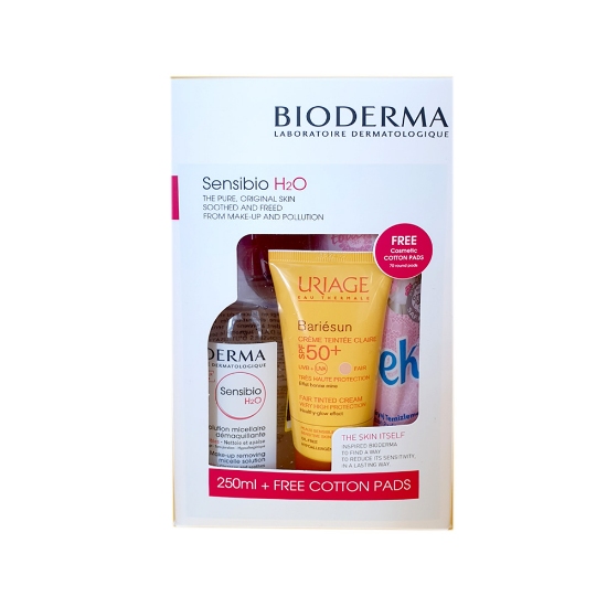 پک ضد آفتاب اورياژ با محلول پاک کننده بايودرما سنسي بيو با پد پاک کننده ديسکي
