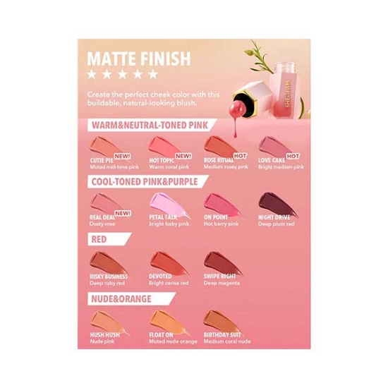 رژگونه مایع Sheglam با رنگ Real Deal، یک محصول چندمنظوره با فرمول سبک و پایدار است که برای ایجاد گونه‌های طبیعی و خوشرنگ طراحی شده است. این محصول با حجم 5 میلی‌لیتر، گزینه‌ای ایده‌آل برای افرادی است که به دنبال یک رژگونه با پوشش عالی، ماندگاری طولانی و جلوه‌ای مات و زیبا هستند.