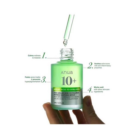 آزلائیک اسید موجود در این سرم با خواص ضدالتهابی قوی، بهسرعت قرمزی و التهاب ناشی از آکنه، روزاسه و حساسیتهای پوستی را کاهش میدهد.