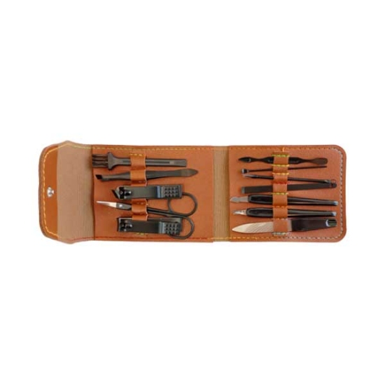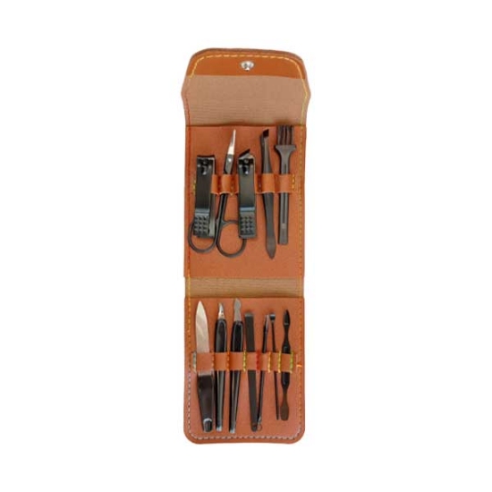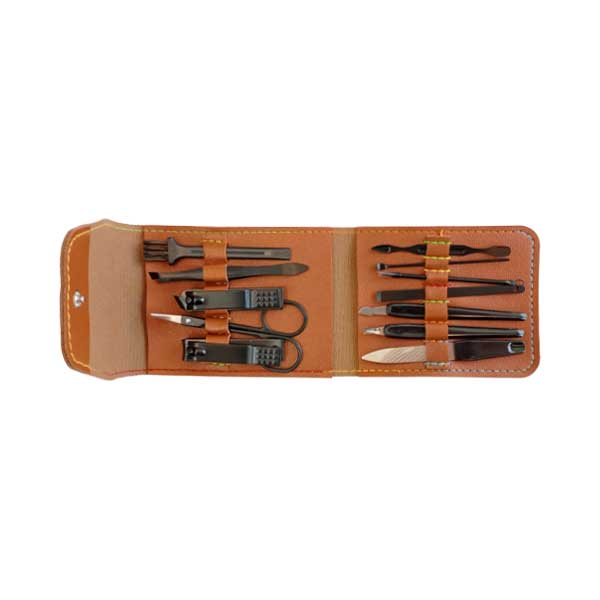این ست مانیکور در یک کیف چرمی با دوخت دقیق و دکمه‌ای محکم ارائه می‌شود که علاوه بر جلوه زیبا، از ابزارها در برابر ضربه و گردوغبار محافظت می‌کند. کیف جمع‌وجور و سبک آن، این محصول را به یک همراه ایده‌آل برای مسافرت و استفاده روزمره تبدیل کرده است.