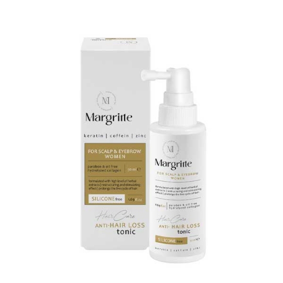 تونیک تقویت کننده موی سر و ابرو بانوان مارگریت، محصولی تخصصی برای تقویت و تغذیه مو و ابرو است که با فرمولاسیون غنی از عصاره‌های گیاهی و مواد مغذی، به کاهش ریزش مو و تحریک رشد مجدد آن‌ها کمک می‌کند. این تونیک با حجم ۵۰ میلی‌لیتر، حاوی ترکیباتی همچون رازیانه، مریم گلی، دم اسب، گل ختمی، کافئین، آرنیکا، پروتئین هیدرولیز شده کراتین، زینک، منیزیم و گلایسین است که هر کدام نقشی مؤثر در بهبود سلامت و ظاهر مو و ابرو ایفا می‌کنند. این محصول با هدف تقویت فولیکول‌های مو، افزایش ضخامت تارهای مو و ابرو، کنترل چربی کف سر و جلوگیری از ریزش مو طراحی شده است.