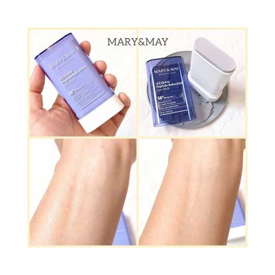 ضدآفتاب استیکی Mary & May با ترکیبات گیاهی و فناوری پیشرفته، نهتنها از پوست در برابر آفتاب محافظت میکند، بلکه بهعنوان یک مراقبت ضدپیری عمل مینماید. پپتایدها و باکوچیول (رتینول گیاهی) موجود در این محصول، به کاهش خطوط ریز و چینوچروک کمک کرده و پوستی صاف و جوان را برای شما بهارمغان میآورند.