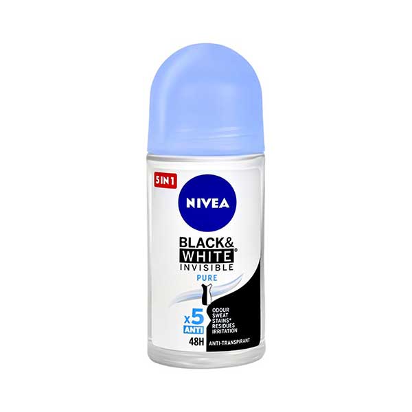 مام رول ضد تعریق زنانه نیوا مدل بلک اند وایت اینویزیبل پیورNivea Black & White Invisible Pure حجم 50 میلی لیتر