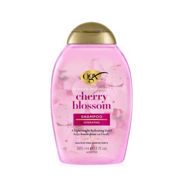 شامپو مو او جی ایکس ogx مدل آبرسان شکوفه گیلاس حجم 385 میلی لیتر