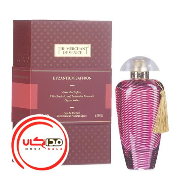 عطر ادکلن تاجر ونیزی بایزانتیوم سافرون-The Merchant of Venice Byzantium Saffron،متشکل از ادويه، صمغ، گياهان معطر، چرم است که این ترکیب برای استفاده در فصول سرد سال پیشنهاد می شود.