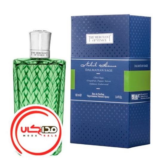 عطر ادکلن تاجر ونیزی دالمیشن سیج-The Merchant of Venice Dalmatian Sage ،عطری خاص از برند ایتالیایی بوده که با ساختار ميوه، ادويه، چوب، گياهان معطر در دسته عطر های تند و گرم قرار می گیرد که به بازار عطر و ادکلن عرضه شد. این عطر در نت اولیه خود با رایحه لیمو، گریپ فروت، مریم گلی آغاز می شود که این ترکیب حس تازگی را برای شما به ارمغان می آورد که در ادامه از این رایحه کاسنه شده و رایحه ی فلفل به عنوان نت میانی به این ترکیب افزوده می شود و در آخر بیشترین رایحه ای که احساس می شود نت پایانی شامل چوب سدر است.