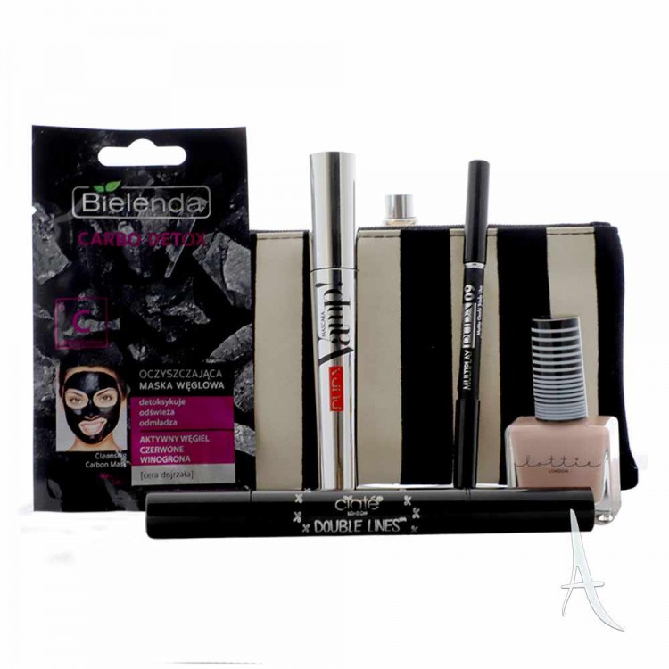 این پک شامل یک کیف لوازم آرایش به همراه یک عدد ریمل ومپ اکستریم، مداد چشم پوپا، ماسک زغالی بیلندا و لاک و ریمل از برند لتی می باشد.